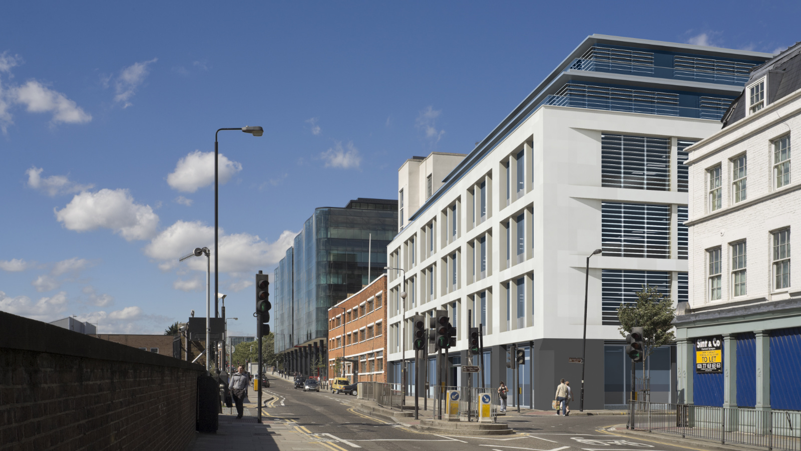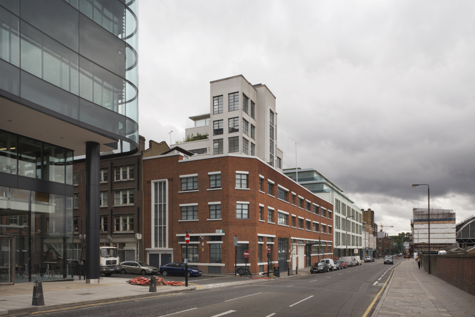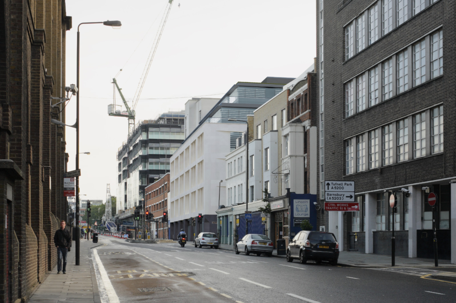 Foster Wilson Size worked with our client, Opticrealm, to gain planning permission for a new mixed use building of five floors of office space above a ground floor with two retail units. The building design relates closely to the robust architecture of the adjacent 19thC warehouses, with sturdy columns and a stone finish. The height of the building is limited by its relationship to the nearby Kings Cross train sheds and a protected view to St Paul’s Cathedral that passes above the building.