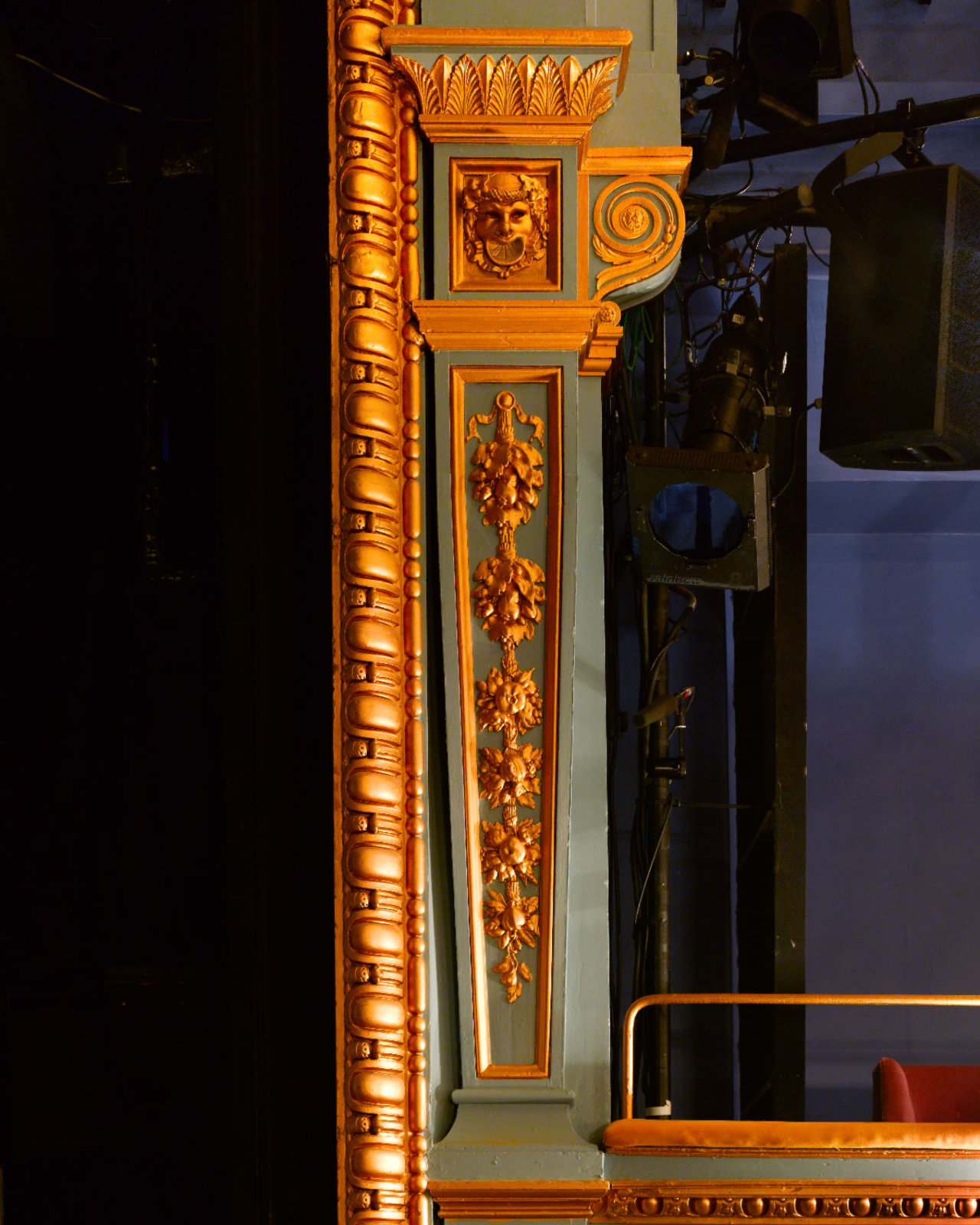 The statue of Euterpe (one of the nine muses) was gilded in gold leaf by paint specialists Hare and Humphries as part of the renovation.