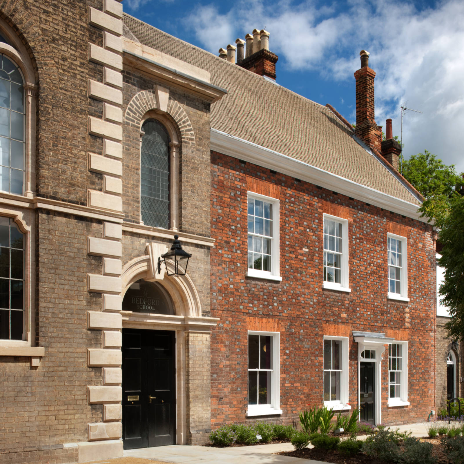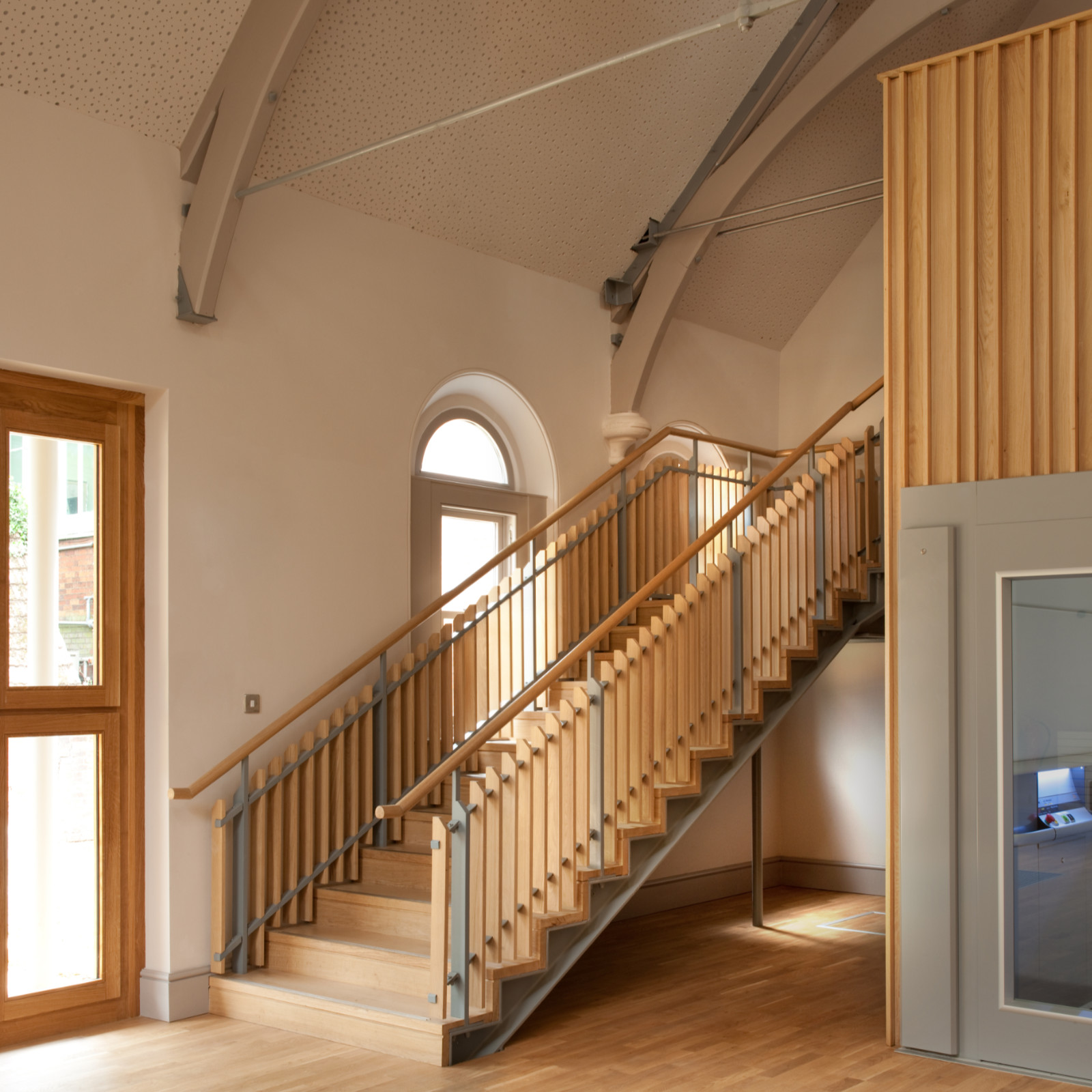 The Quarry Theatre at St Luke’s has been created from a redundant 19thC Moravian church and 18thC Minister’s House to create a new performing arts centre for Bedford School and the local community. The location, facing the town at the front and the school grounds at the rear, emphasises the link between the school and the community but posed the interesting challenge of a building with two ‘front doors’. Historical research on the Moravian settlement in Bedford was followed by detailed discussions with conservation and planning officers to achieve consent for the remodelling of the Grade II listed building.